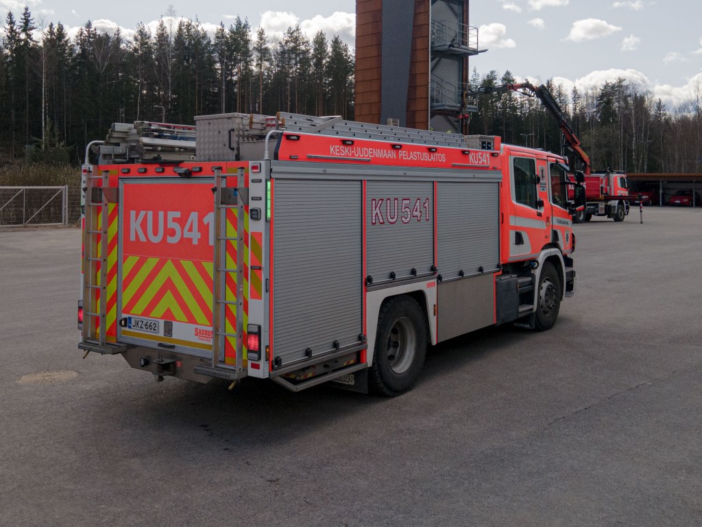 RKU541 on Scania P370 Crew Cab, vuosimallia 2018. Korityöt on toteuttanut Saurus Oy. Ajoneuvossa on paikat viidelle henkilölle.